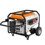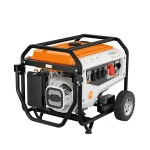 Gerador a Gasolina STIHL GR 80, a escolha para quem precisa de mais potência para as demandas mais exigentes. Este gerador robusto é ideal como fonte de energia ou para uso em locais sem acesso à rede elétrica. O GR 80 possui uma estrutura tubular de aço resistente, que facilita o transporte graças às suas rodas grandes e à alça dobrável. Este gerador fornece 7,3 kW de potência elétrica, distribuída por três tomadas monofásicas e uma trifásica. A seleção da tensão é feita por um interruptor separado. Além disso, a regulação automática da tensão (AVR) garante uma tensão estável, independentemente do consumo dos dispositivos conectados. O GR 80 possui um tanque de 25 litros que, aliado ao seu baixo consumo de combustível, assegura uma produção contínua de energia e apresenta uma autonomia de até 8 horas com 50% de carga. Seu painel de controle moderno conta com um visor digital que mostra a tensão, frequência, tempo de operação atual e total de horas trabalhadas. Para evitar danos, o sensor de nível de óleo desliga automaticamente o motor quando o óleo está baixo. Para garantir a segurança, o GR 80 vem com tomadas equipadas com tampas de proteção e uma chave seletora de tensão. Ele possui três disjuntores: um para cada tomada monofásica, um para a trifásica e um disjuntor geral, todos projetados para desarmar automaticamente em caso de sobrecarga. O GR 80 está disponível em versões 127V monofásico e 220V trifásico, ou 220V monofásico e 380V trifásico, oferecendo versatilidade para diferentes necessidades. Sua chave de seleção de fase assegura uma operação segura e durável. O Gerador STIHL GR 80 é a escolha confiável e prática para suas necessidades de energia, seja em sítios, construções, acampamentos ou áreas remotas.
